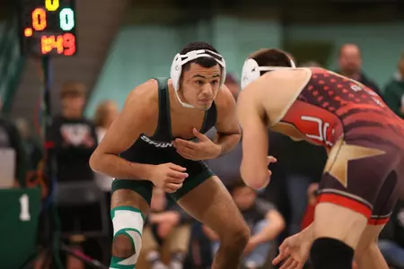 At 133, Eicher had a solid outing in his first action as a Spartan after transferring from Northern Illinois this past summer. Eicher opened with a first-round bye, then beat David Bavery of Notre Dame College in a 4-1 decision. In the quarters, Eicher won by an 8-0 major decision over current teammate, freshman Matt Santos. Eicher was edged by Corey Keener of Central Michigan, 6-2, in the semifinals, before bouncing back with a 3-0 decision over former Northern Illinois teammate, Alijah Jeffery. In the third-place match, Eicher was a 3-2 decision over Ian Parker of Iowa State.