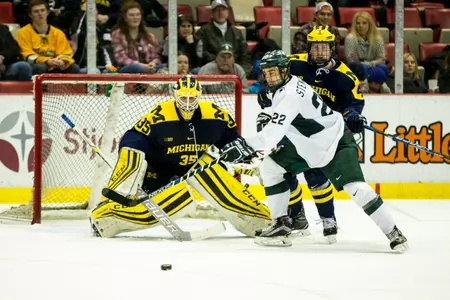 The Spartans outshot the Wolverines 44-35 in the game and produced a few more scoring chances in the final minutes of regulation and early in overtime, but couldn't again find the back of the net.