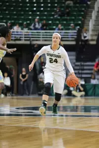 Play was tight with MSU holding a slight 7-6 lead in the first quarter before Michigan State went on a 11-0 run to end the first quarter. Jankoska ended the quarter in the same way she began the game with a 3-pointer to give the Spartans the 18-6 advantage to end the period.