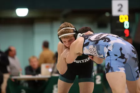 Michigan State collected victories by redshirt freshman Logan Griffin (125), redshirt junior Javier Gasca (141), redshirt freshmanAustin Thompson (157), freshman Drew Hughes (165) and redshirt senior Drew Barnes (174), as the Spartans won three in a row to open a 21-10 lead, before the Wildcats took the last three bouts all in extra-point wins for the victory.