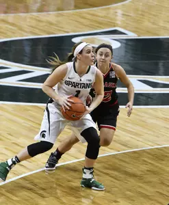 The Spartans hit three-straight 3-pointers to start the fourth quarter and took a 54-44 lead with 7:44 left. The Scarlet Knights began to chip away at the lead from there. A layup by redshirt freshman Victoria Gaines with 5:44 remaining was the final field goal for MSU.
