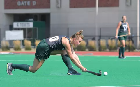 The third goal of the afternoon came from Bonshak. The freshman played the ball after it was deflected out of the upper left side of the circle. The Allentown, Pa. native played the ball back into the circle and fired it in low, giving MSU a two-goal lead with just under nine minutes to play.