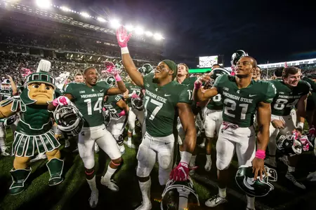 The Spartans improved to 6-1 overall on the season to become bowl eligible for the 10th time in Dantonio's 11 seasons at MSU.
