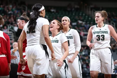 Through the first five games of the season, the Michigan State offense has flexed its muscles. The Spartans have averaged 92.2 points, while allowing only 64.0. The Spartans' 92.2 ppg ranks second in the Big Ten and sixth in the NCAA. MSU has three players averaging in double figures. Redshirt-senior guard Branndais Agee is first in scoring, averaging 13.0 points per game. Freshman forward Sidney Cooks is second in scoring with 12.2 ppg. Senior Taya Reimer is third on the team in scoring, averaging 11.3 points per game.