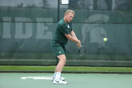 Junior Brett Forman and sophomore Alexander Kim fell 6-1 at No. 3 doubles to Isaac Perez and Mack Galvin. The Spartans quickly battled back with a 6-2 victory in the No. 2 doubles from sophomore Billy Shisler and freshman Doug Francken. MSU's juniors Michael Dube and Jasper Koenen rounded out doubles play and pushed their No. 1 doubles win streak to three with a 7-5 match victory.