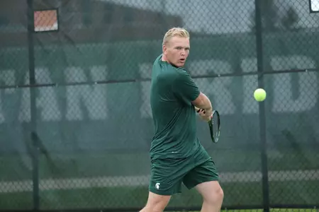 Koenen took the first victory at the No. 2 singles with a 6-1, 6-4 win over Sam Lampman at No. 2 singles to push his win streak to six. Sophomore Ivan Rakic kept the Spartans on track with a 6-2, 6-4 victory to give the Spartans the 3-0 advantage. Dube sealed the deal for the Spartans with a 6-4, 6-3 win over Grant Riechmann at No. 3 singles.