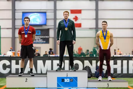 Michigan State's best finish came on the men's side in the pole vault as redshirt junior Tim Erhardt was the lone Spartan to claim a first-place finish and become a B1G Champion on the first day. Erhardt cleared 5.49-meters, a height that was a personal record, and he broke the SPIRE Institute meet record, which was previously set by him.