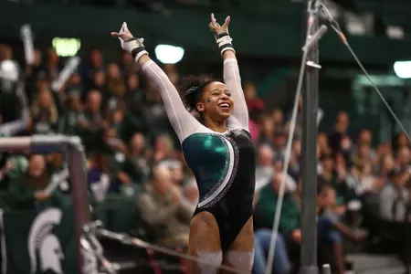 Junior Hailee Westney looks to get back on track on the bars this weekend where she has taken home the event title in three meets already this season, with a high score of 9.900. The Spartans have won the bars title at every meet so far in 2017, as junior Lindsey Lemke posted a season-high score of 9.825 last weekend to take the title at Rutgers.