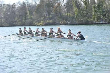 Varsity Eight Lineup: cox-: Hannah Worth; Stroke - Brianna Higgins; 7- Meaghan Faucher; 6- Nicole Marek; 5- Mikayla Russell; 4- Brook Edgar; 3- Monica Hessler; 2- Lindsey Klei; Bow- Becca Uebele