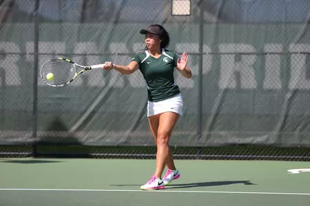 MSU got the day started off right by taking the doubles point with a pair of 6-2 victories from the pairs of Emily Metcalf and Davina Nguyen, and Samantha Memije and Athena Trouillot. Allie Baer and Erin Faulkner were up 4-3 in their match when the Spartans won the doubles point. Memije and Trouillot earned their team-high 11th doubles win of the season.