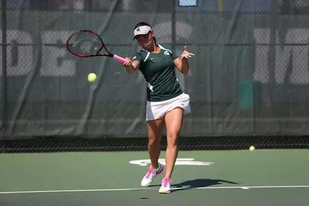 MSU set the tone immediately in doubles play, in particular at court one, where Emily Metcalf and Davina Nguyen won handedly, 6-1. It was the duos fourth win in a row and they are now 10-4 on the year. Shortly after, Athena Trouillot and Samantha Memije secured the doubles point by winning, 6-3, on court two and the pair earned their team-high 14th doubles win.