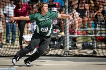 SACRAMENTO, Calif. - Despite scorching heat, junior Katelyn Daniels finished eighth in the discus at the U.S. Track & Field Championships at Hornet Stadium in Sacramento, California. The event was delayed several hours due to the high temperatures.