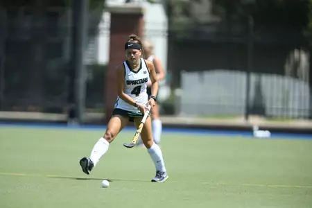 DAVIS, Calif. -- The Michigan State University field hockey team earned its first win of the season when it defeated UC Davis Saturday afternoon, 2-1, at Aggie Field Hockey Facility in Davis, Calif.
