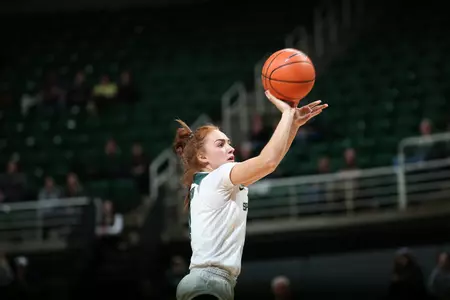 McCutcheon led all scorers with her first-ever 20-point game, ending with 25 points. She was solid from long range going 6-for-10. Redshirt sophomore Shay Colley had 17 points, seven rebounds and eight assists for Michigan State. Freshman forward Sidney Cooks also scored in double figures, adding 10 points.