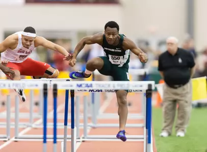 Junior Will Agodu took first in the 60m hurdles with a time of 7.88, just one-tenth of a second ahead of the second-place finisher. Agodu's time sets a new personal record for the Spartan and ties the school record set by Shane Wells in 2009.