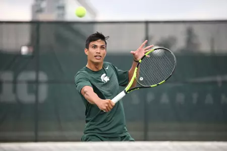 Proving to be an eventful match-up at No. 2 singles, Dube went back and forth with Raupuk, not only going to a breaker in the second set, but needing a third for a decision. Down 4-3 late in the set, Dube battled back to take a 6-4 win, coming in clutch for the Spartans. Dube finished with a 6-2, 6-7 (6-8), 6-4 win over Raupuk to lift MSU to victory.