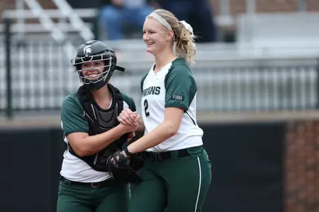 The Spartans rallied from a 1-0 deficit with a three-run fifth inning. Four of MSU's base hits were doubles: two from Lea Foerster, a two-run double from Kelcey Carrasco in the fifth and an RBI double from Caitie Ladd in the sixth.