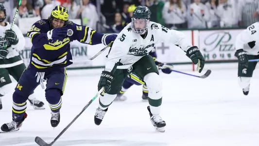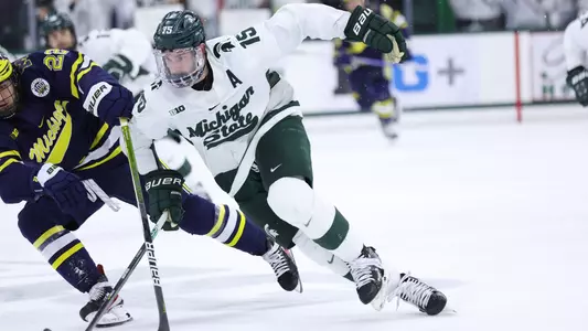 Academic All-Big Ten selection ... Recipient of the Dr. Steve Swistak Memorial Scholarship … Appeared in all 36 games for MSU with career bests of two goals and six assists, while leading MSU with 79 penalty minutes and blocking 48 shots ... Had his first point of the season in the Air Force Series (10/8-9) ... Appeared in his 100th career game at UMass-Lowell (10/23) ... Had the secondary assist on Erik Middendorf’s game-winner at Ohio State (10/29) ... Assisted on Mitchell Lewandowski’s third-period game-winner vs. Ferris State (11/11) and also on Dennis Cesana’s game-tying marker in the road game at Ferris (11/13) ... Blocked three shots in the sweep of Wisconsin (11/19-20) ... Scored his first goal of the season at Penn State (12/3-4) and added an assist in the second contest ... Blocked seven shots in the GLI (12/29-30), including tying his season best of four vs. Western Michigan ... Scored his second goal of the season on a breakaway at Minnesota (2/4) ... Had an assist and a pair of blocked shots in the final regular-season series vs. Penn State (2/25-26) ... Recorded a pair of blocked shots and had an assist in the B1G quarterfinal series at Michigan (3/4-5).