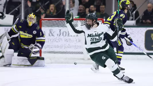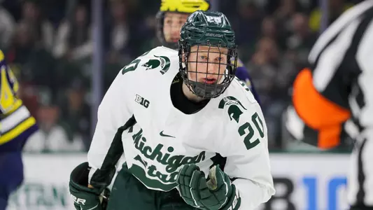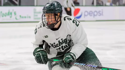 Big Ten All-Tournament Team ... College Sports Communicators (CSC) Academic All-District selection ... Academic All-Big Ten ... Skated on the top line in all 38 games ... Had a career-best 13 goals, good for third on the team ... Finished with 12 assists and 25 points ... Was 2-3-5 on the power play and also had a pair of game-winners ... Ended the season a +5 with 15 blocked shots ... Had an assist in the season-opening series against Lake Superior State (10/7-8) ... Recorded his first career hat trick in the opener against Canisius and compiled four goals in the series (10/19-20) ... Had a career-best three assists in the opener at Ohio State (11/3) ... Scored his sixth goal of the year in the opener vs. Penn State (11/10) ... Recorded a goal and an assist in the series opener against Notre Dame (12/8) ... Had a pair of assists in the GLI semifinal vs. Ferris State (12/28) with two blocked shots ... Delivered a dramatic game-winner with four seconds remaining at home against Minnesota, and then assisted on MSU’s only goal in game two (1/26-27) ... Scored the game-winner in MSU’s second victory at Michigan (2/9) ... Had a goal and an assist in the home win over Ohio State (2/24) ... Got MSU on the board with his score in the B1G semifinal win over Ohio State (3/16) ... Scored his 12th goal of the season in the Big Ten Championship game victory over Michigan (3/23) ... Opened the scoring for MSU in the NCAA victory over Western Michigan (3/29).