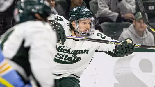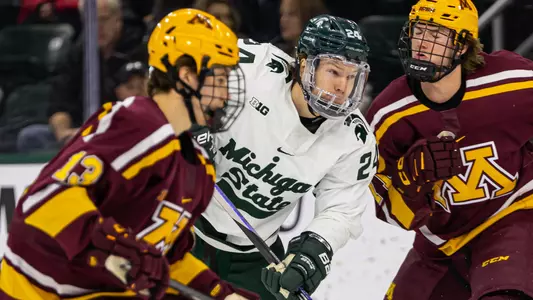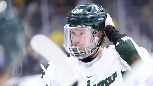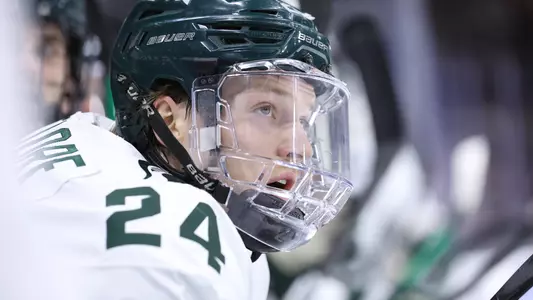 College Sports Communicators (CSC) Academic All-District Selection ...Academic All-Big Ten selection ... Earned the team's Blue Line Club President's Award, given to the senior with the highest grade-point average ... Skated in all 38 games for MSU, and finished with a 7-9-16 scoring line ... His nine assists were a career best ... Scored once on the power play and one of his goals was a game-winner ... Blocked a career-high 20 shots ... Recorded his first point of the season on an assist on a Nash Nienhuis power-play marker vs. LIU (10/22) ... Tied his career best with a pair of blocked shots in a 1-1 deadlock at Notre Dame (10/29) ... Scored four times in the first game of the Wisconsin series at home (11/4-5), the first four-goal effort for a Spartan since Sean Berens did so in a 6-1 win over Northern Michigan in 1998 ... Had a goal in the win at Penn State (11/19) ... Scored a goal in the 3-2 OT win over Penn State (1/13) ... Had a three-point weekend in a home sweep of Notre Dame (2/3-4), scoring a goal in game one and two assists in game two ... Assisted on Jeremy Davidson’s power play goal against Michigan at LCA (2/11) ... Had four assists (including a three-helper game in the opener) in the final weekend of the regular season at Wisconsin (2/17-18) ... Picked up an assist in the B1G quarterfinal series at Notre Dame (3/3-5).