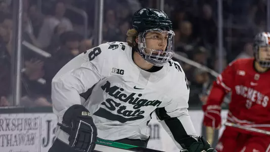 Honorable Mention All-Big Ten for the second consecutive season ... Academic All-Big Ten ... Preseason First Team All-Big Ten selection ... Finished the season with a 13-18-31 scoring line, three points shy of his sophomore season after starting the season with an injury ... Was a +20 and was second on the team in scoring ... Led the team in power play goals (5) and was second in power play points (13), and had a career best three game-winners ... Had the primary assist on Daniel Russell's game-winner against Boston College (10/12) ... Assisted on Daniel Russell's goal against OSU (11/9) ... Had two goals and an assist in a commanding win over Notre Dame (11/15) ... Assisted on Charlie Stramel's power play goal at Wisconsin (12/7) ... Scored a power play goal and a pair of assists in the Minnesota series on the road (12/13-14) ... Posted the game-winning goal against Northern Michigan in the GLI (12/29) ... Scored a goal in a home win against Wisconsin (1/2) ... Delivered a goal and two assists in a win at Penn State (1/10) ... Had a goal and an assist (+2) in an OT loss at Michigan (1/17) ... Played in his 100th career game vs. Minnesota and had an assist in the series (1/24-25) ... Scored his eighth of the season at Ohio State (1/30) ... Picked up a goal and an assist in MSU's series against Michigan (2/7-8) ... Contributed a goal and an assist in the final home series vs. Penn State (2/21-22) ... Delivered a goal and an assist in the final series at Notre Dame (2/28-3/1) ... Had the primary assist on Isaac Howard's power play goal in the 1-0 Big Ten semifinal victory over Notre Dame (3/15) ...Had a goal and an assist in the Big Ten Championship game vs. Ohio State (3/22) ... Had a goal and an assist (+2) in the NCAA game vs. Cornell (3/27)